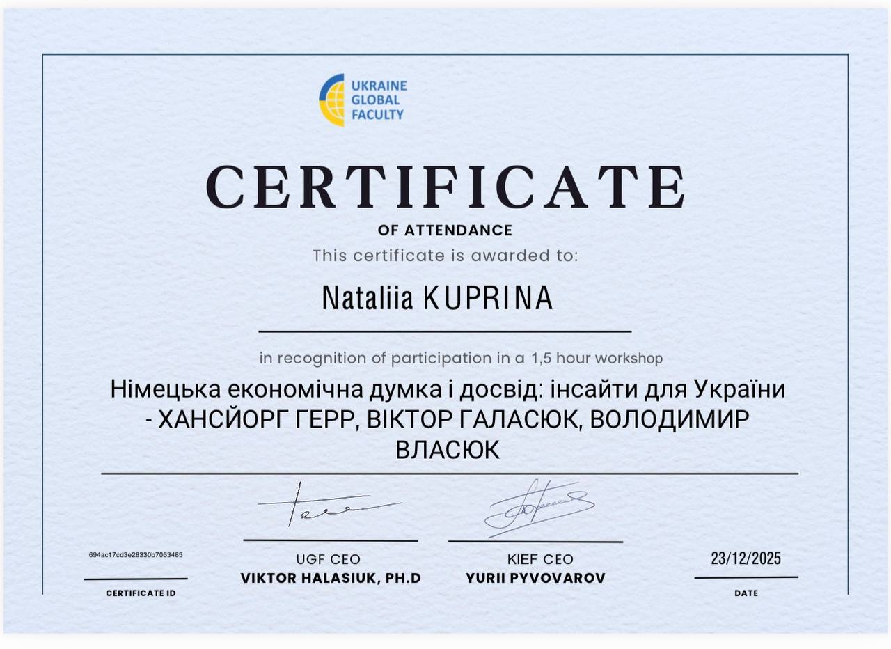 23.12.2025 року викладачі кафедри фінансів, обліку та аудиту ОНТУ були на семінарі на тему «Німецька економічна думка і досвід: інсайти для України».