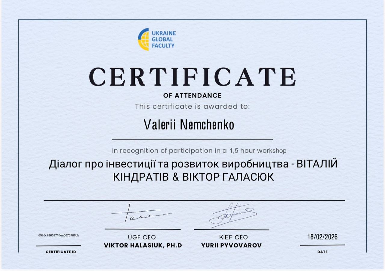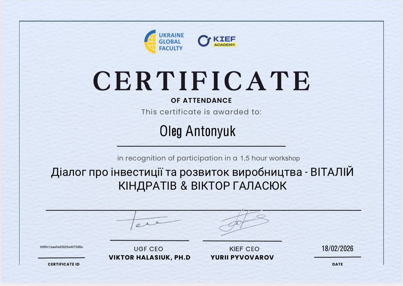 18 лютого 2026 року викладачі та здобувачі кафедри фінансів, обліку та аудиту ОНТУ були на лекціі-семінарі на тему: «Діалог про інвестиції та розвиток виробництва».