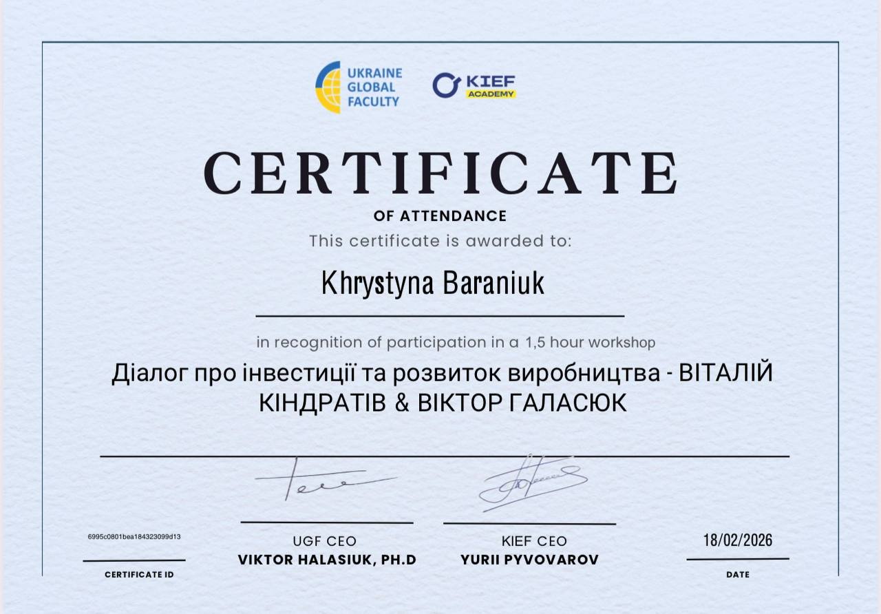 18.02.2026 року відбулася лекція-семінар. Спікер: Віталій Кіндратів – заступник Міністра економіки, довкілля та сільського господарства України