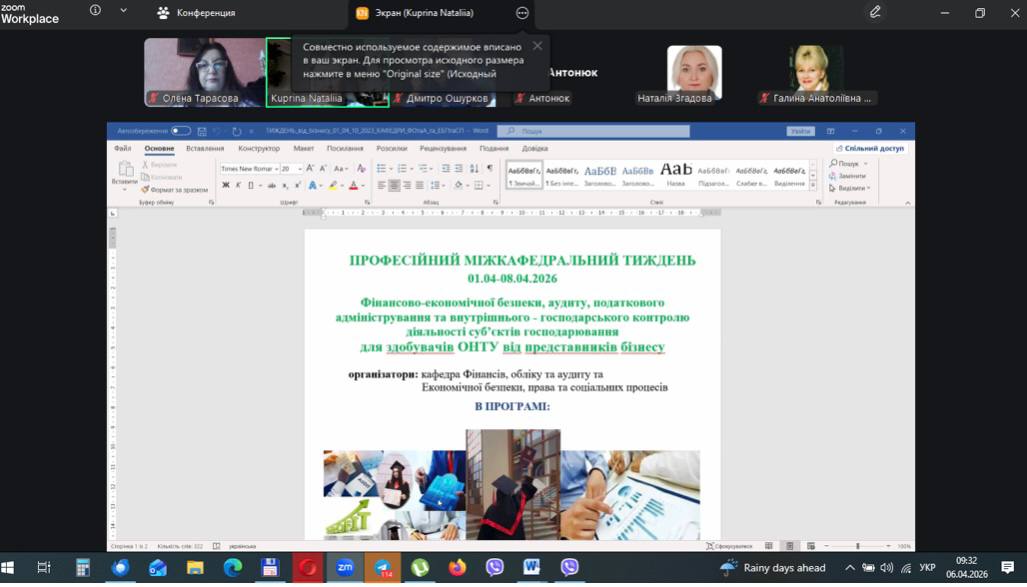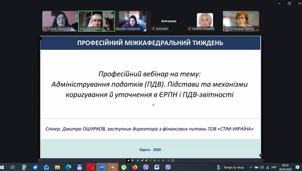 06.04.2026 р. професійний вебінар для здобувачів економічних спеціальностей й викладачів ОНТУ на тему: